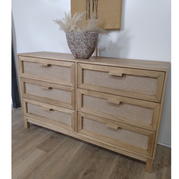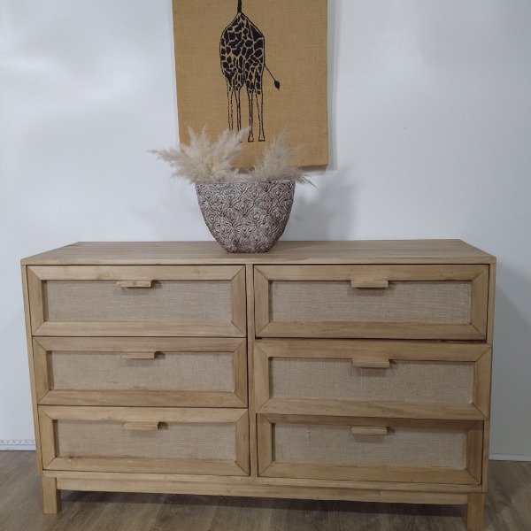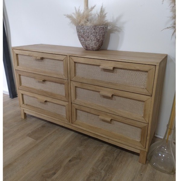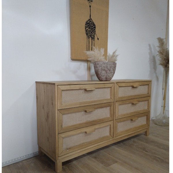 Cómoda en Madera Álamo combinada con Fibras Naturales: Elegancia y Naturaleza en tu Hogar