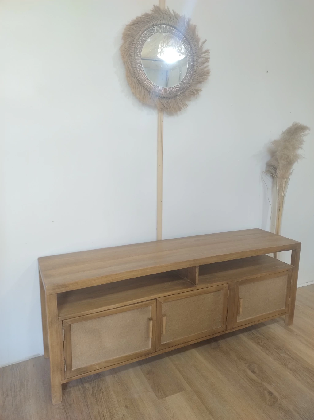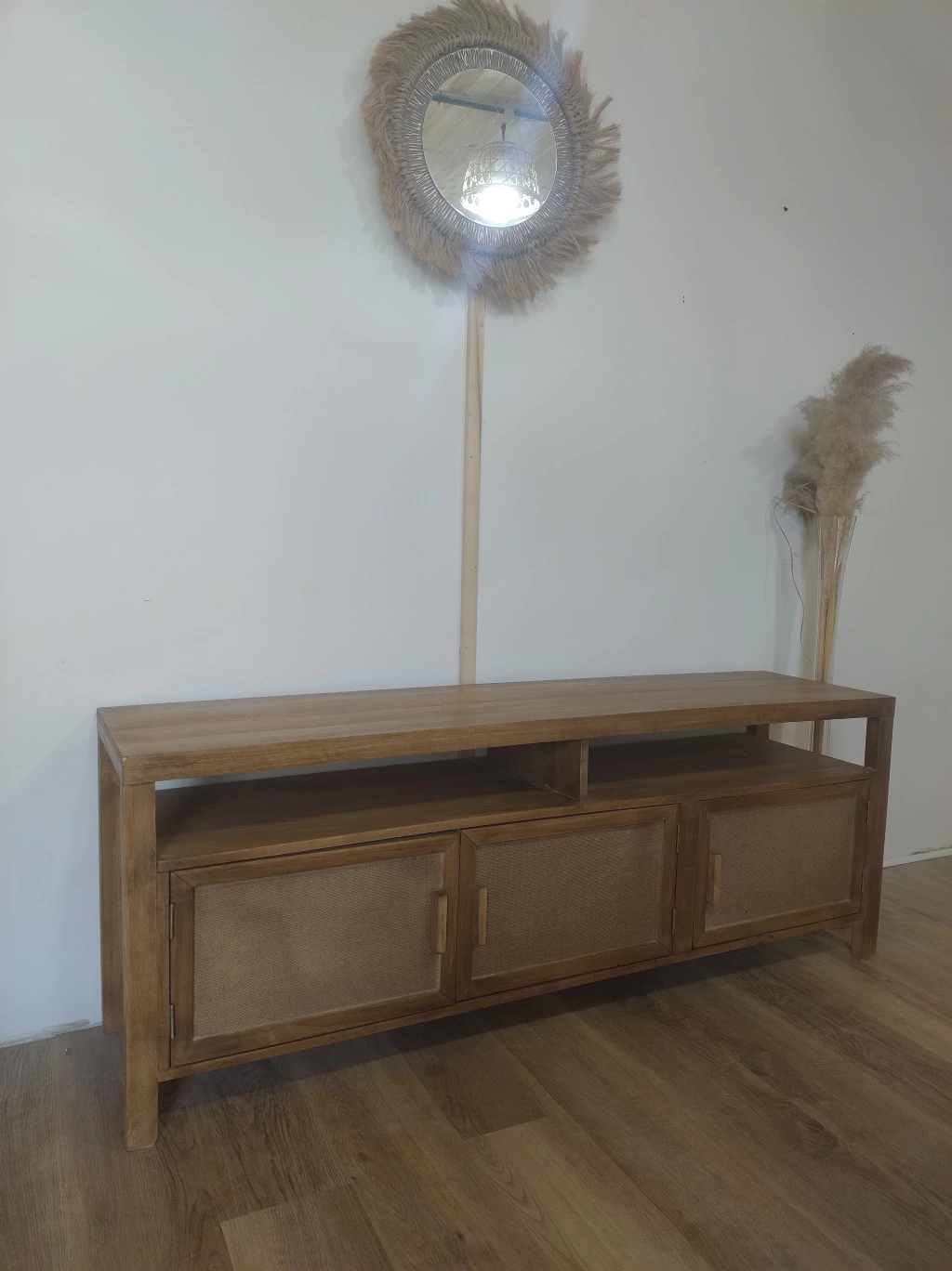 El banco RACK FIBRAS NATURALES está fabricada en madera de alamo maciza 100% resistente, el mueble esta fabricado, con los mejores productos del mercado, asegurando una altísima vida útil.